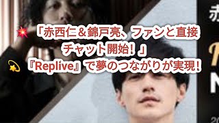 🔥 赤西仁&錦戸亮、ファンと直接つながる!?」新アプリ『Replive』で夢のチャット体験スタート! 2025/11/18 錦戸亮 スポンサーリンク 🔥 赤西仁&錦戸亮、ファンと直接つながる!?」新アプリ『Replive』で夢のチャット体験スタート! 歌手で俳優の赤西仁と錦戸亮が、ファンダムアプリ「Replive(リプライブ)」に参加することが27日に発表された。