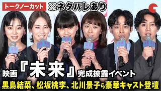 【トークノーカット】※ネタバレあり 黒島結菜、山﨑七海、坂東龍汰、近藤華、松坂桃李、北川景子、瀬々敬久監督、湊かなえが登壇!映画『未来』完成披露イベント 2026/3/19 北川景子 スポンサーリンク 【トークノーカット】※ネタバレあり 黒島結菜、山﨑七海、坂東龍汰、近藤華、松坂桃李、北川景子、瀬々敬久監督、湊かなえが登壇!映画『未来』完成披露イベント 黒島結菜、山﨑七海、坂東龍汰、近藤華、松坂桃李、北川景子、瀬々敬久監督、湊かなえが登壇!2026年3月18日 TOHOシネマズ …